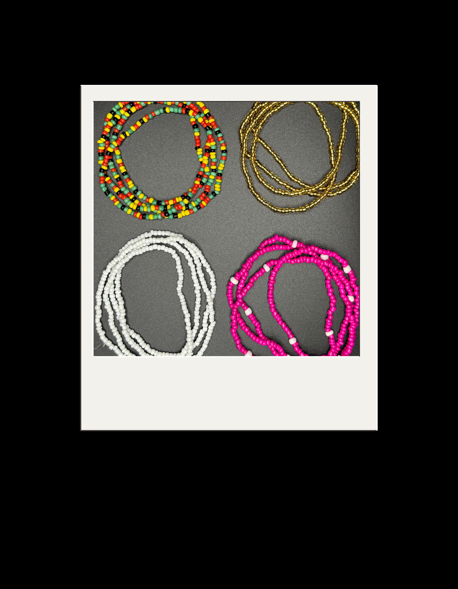- Color options: gold, multicolored (black, green, red, and yellow), pink, and white.